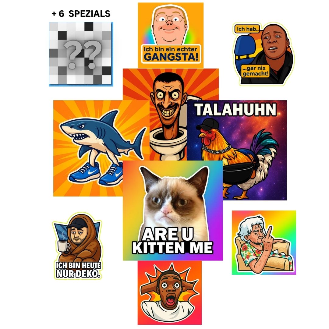 Deutsche Memes Sticker Pack | 31 Premium Meme Sticker mit Holo- und Glitzer-Effekt